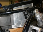 Umbau 2007-2009Nach Demontage des riesigen ZRX Original-Plastik und Bau des neuen Heckrahmens erfolgte die Neuordnung der Elektrik mit kleiner Gel-Batterie und komprimierten Ausmaß in einem Eigenbau ALU-Kasten, der von außen (seitlich) nicht sichtbar sein sollte und im Heckrahmen hängt.